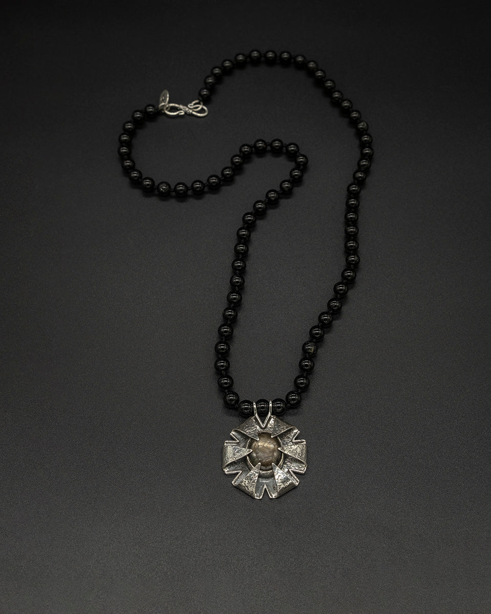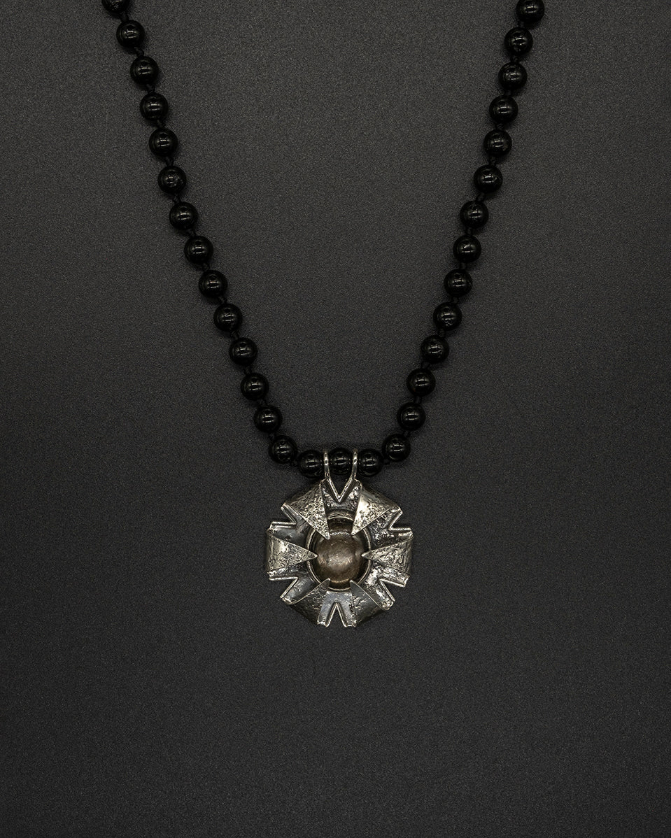 This piece features a black sapphire silver pendant on a hand-knotted black tourmaline chain, creating a striking balance of depth and elegance. Known for its protective and grounding energy, this necklace is a powerful talisman of strength, clarity, and inner peace.